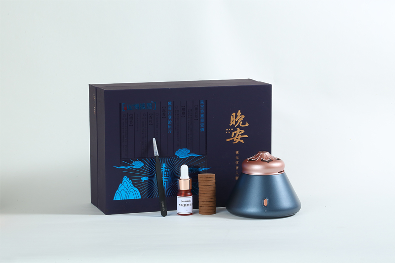 現(xiàn)代人生活壓力大,很多人存在不同程度的睡眠問(wèn)題。 古城香業(yè)傳承國(guó)家級(jí)非物質(zhì)文化遺產(chǎn)清苑傳統(tǒng)制香技藝,在中國(guó)古代隔火熏香的基礎(chǔ)上,創(chuàng)新地將傳統(tǒng)元素與現(xiàn)代工藝相結(jié)合研發(fā)電子熏香器,采用海南沉香、香杉粉、酸棗仁研制成安神助眠熏香片,搭配由薰衣草油、檀香油、甜橙花油調(diào)制而成的熏香精油,通過(guò)程序變溫加熱緩釋技術(shù)使甜美的花果香、醇和的沉檀香氣持久縈繞,在深度睡眠中與您相遇。